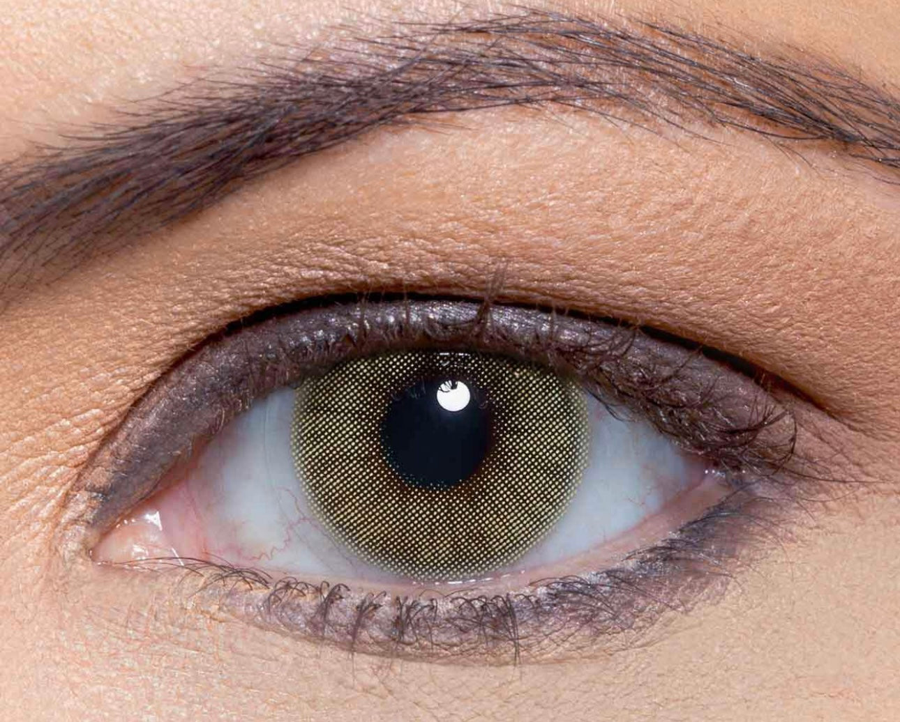 La teinte ambré clair se fond subtilement dans l’iris, créant un effet naturel chaux et lumineux, idéal pour les carnations dorées, mates ou très claires.